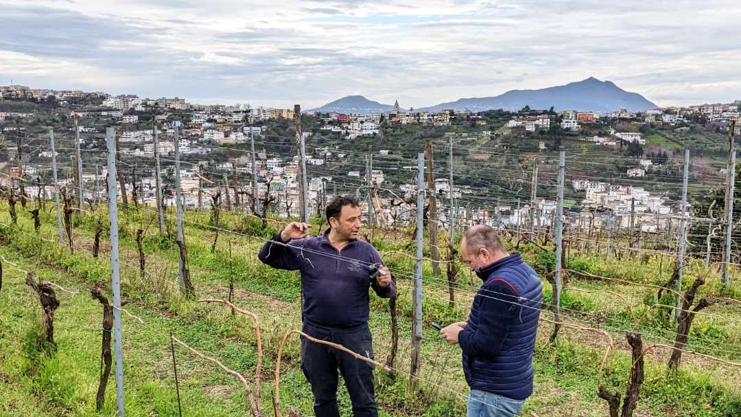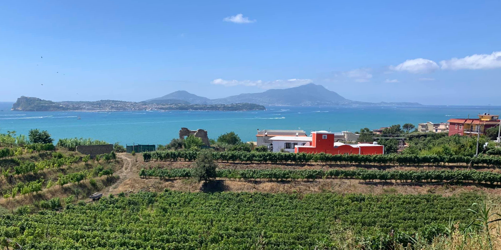 Cantine del Mare’s vineyards are dotted around ‘Monte di Procida’, a volcanic outcrop to the west of Napoli that is within the Campo Flegrei (Phlegraean Fields), of a ‘caldera’ with 24 volcanic edifices, most of which are under water. The land is an eclectic mix of national park, historic, smart, and ramshackle, residential, tourist and commercial properties, all totally unencumbered by any form of planning. There are no uninterrupted tracts of land here, everything is small scale, and vineyards can often be confused with gardens.